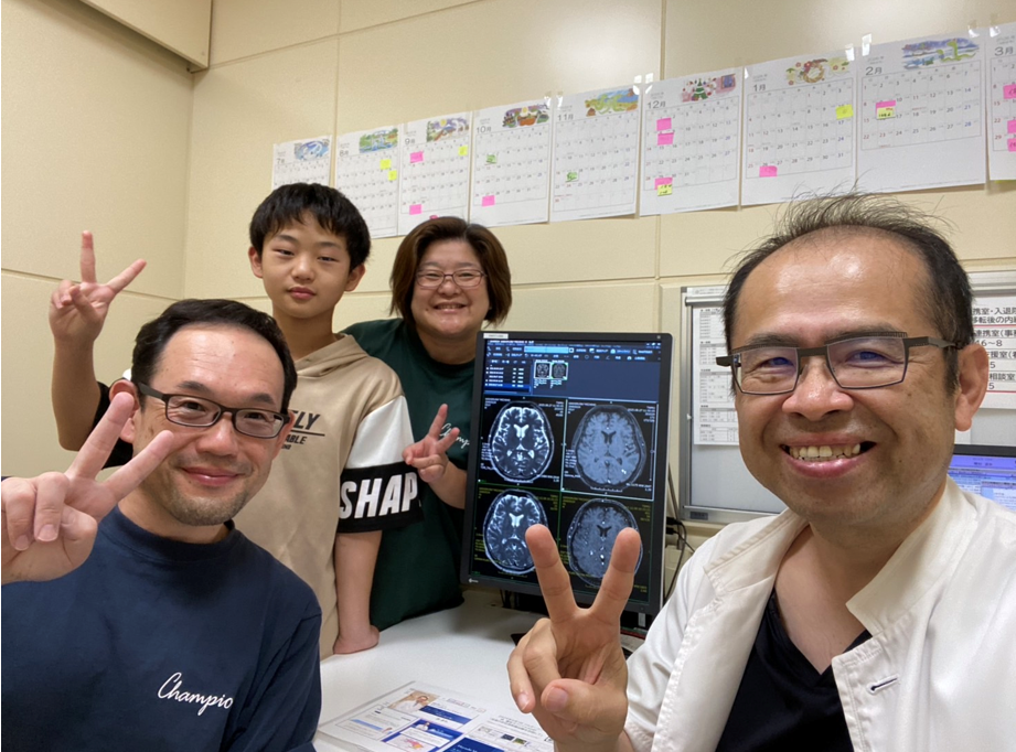 茨城在住のAVM患者さん(左図)。いまから10年前に初めていらっしゃり、2度のガンマナイフにて今回外来にて完全消失を確認。しかも放射線障害もなく文字通り完治となった。その時に外来で印象的だったのは「林先生にすべてをかけた!もし治らなくとも、途中出血したとしても、この先生にすべてをかけた。だから途中何があっても不安にはならなかった。それは最初の外来のときに林先生に決めようと思ったときからであった、、」とお言葉を頂いたことでした。同じ患者経験を持つものとして、とても客観的に共感を持てる言葉でした。今後も「治します!」「ベストを尽くします!!」と言い切れる医者になれるように。そして、患者さんにも「こういう人生にしたい!」「これがしたい!!」ということをフランクに言っていただける存在になれるよう精進したいと考えています。そして、最後に息子さん(現在12歳、当時2歳)から「本当に感謝しています!」と言って頂けました!!