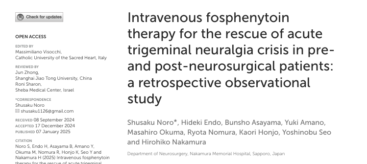 学会・講演学術論文症例6. 三叉神経痛 2025年11月7日 三叉神経痛急性増悪期治療に福音 日本脳神経外科学会第84回学術総会(パシフィコ横浜:10/29-31)に ... 三叉神経痛急性増悪期治療に福音